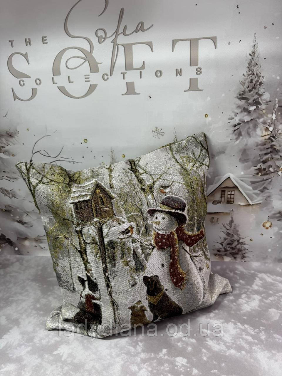Зимовий настрій! Наволочка гобеленова новорічна декоративна 45*45 Туреччина, фото 1